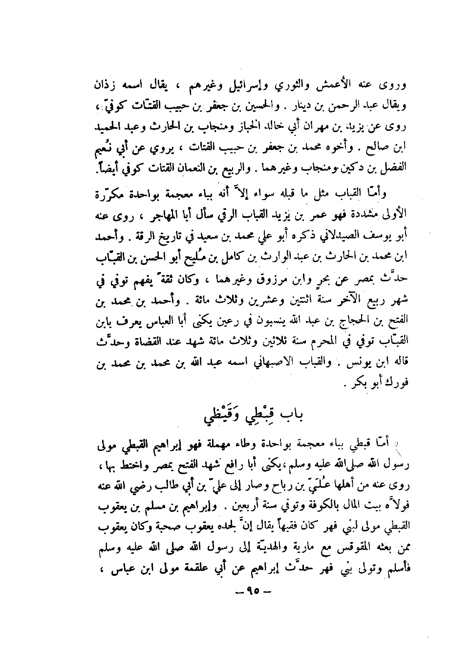 أما قطنٌ بالقاف والنون فهو قطن أبو سعيد سمع معاوية، روى عنه ابنه سعيد يعد في البصريين.
