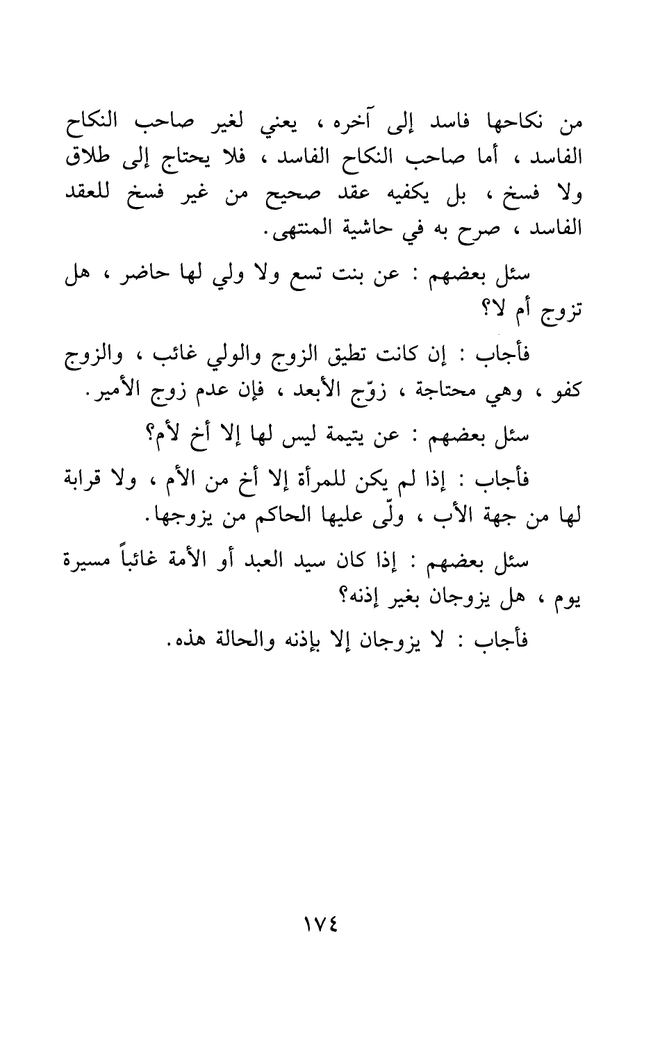 فأجاب: إن كانت تطيق الزوج والولي غائب، والزوج كفو، وهي محتاجة، زوّج الأبعد، فإن عدم زوج الأمير.