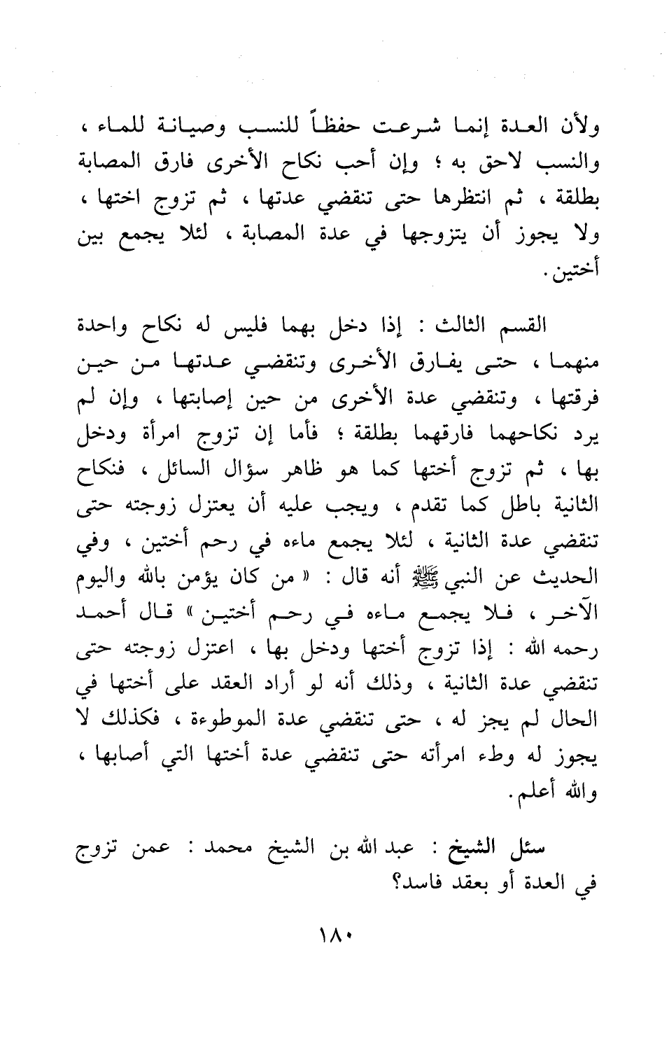سئل الشيخ عبد الله بن الشيخ محمد: عمن تزوج في العدة أو بعقد فاسد؟