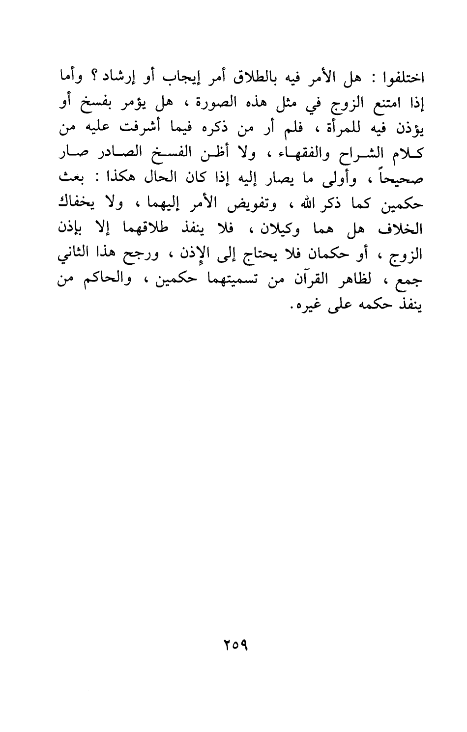 اختلفوا: هل الأمر فيه بالطلاق أمر إيجاب أو إرشاد؟ وأما إذا امتنع الزوج في مثل هذه الصورة، هل يؤمر بفسخ أو يؤذن فيه للمرأة؟ فلم أر من ذكره فيما أشرفت عليه من كلام الشراح والفقهاء، ولا أظن الفسخ الصادر صار صحيحاً، وأولى ما يصار إليه إذا كان الحال هكذا: بعث حكمين كما ذكر الله، وتفويض الأمر إليهما. ولا يخفاك الخلاف: هل هما وكيلان فلا ينفذ طلاقهما إلا بإذن الزوج، أو حكمان فلا يحتاج إلى الإذن؛ ورجح هذا الثاني جمع، لظاهر القرآن من تسميتهما حكمين، والحاكم من ينفذ حكمه على غيره.
