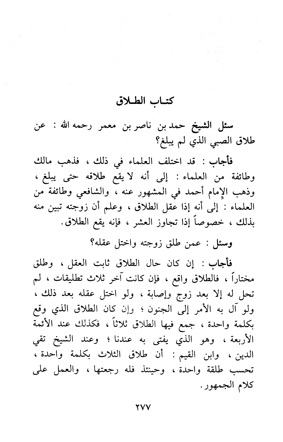 سئل الشيخ حمد بن ناصر بن معمر، رحمه الله: عن طلاق الصبي الذي لم يبلغ؟