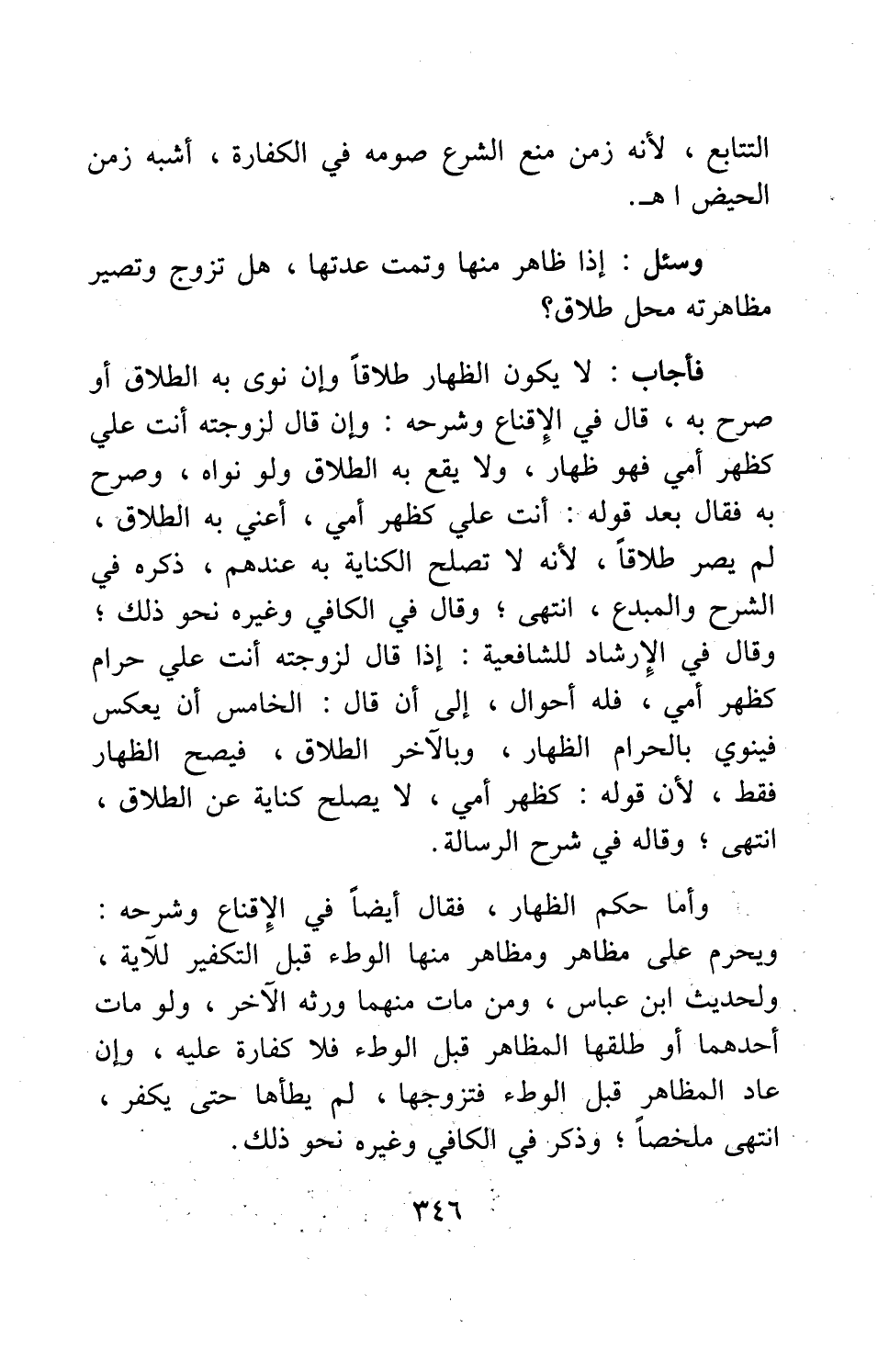 وقال في الإرشاد للشافعية: إذا قال لزوجته: أنت علي حرام كظهر أمي، فله أحوال - إلى أن قال – الخامس: أن يعكس فينوي بالحرام الظهار، وبالآخر الطلاق، فيصح الظهار فقط، لأن قوله: كظهر أمي، لا يصلح كناية عن الطلاق. انتهى. وقاله في شرح الرسالة.