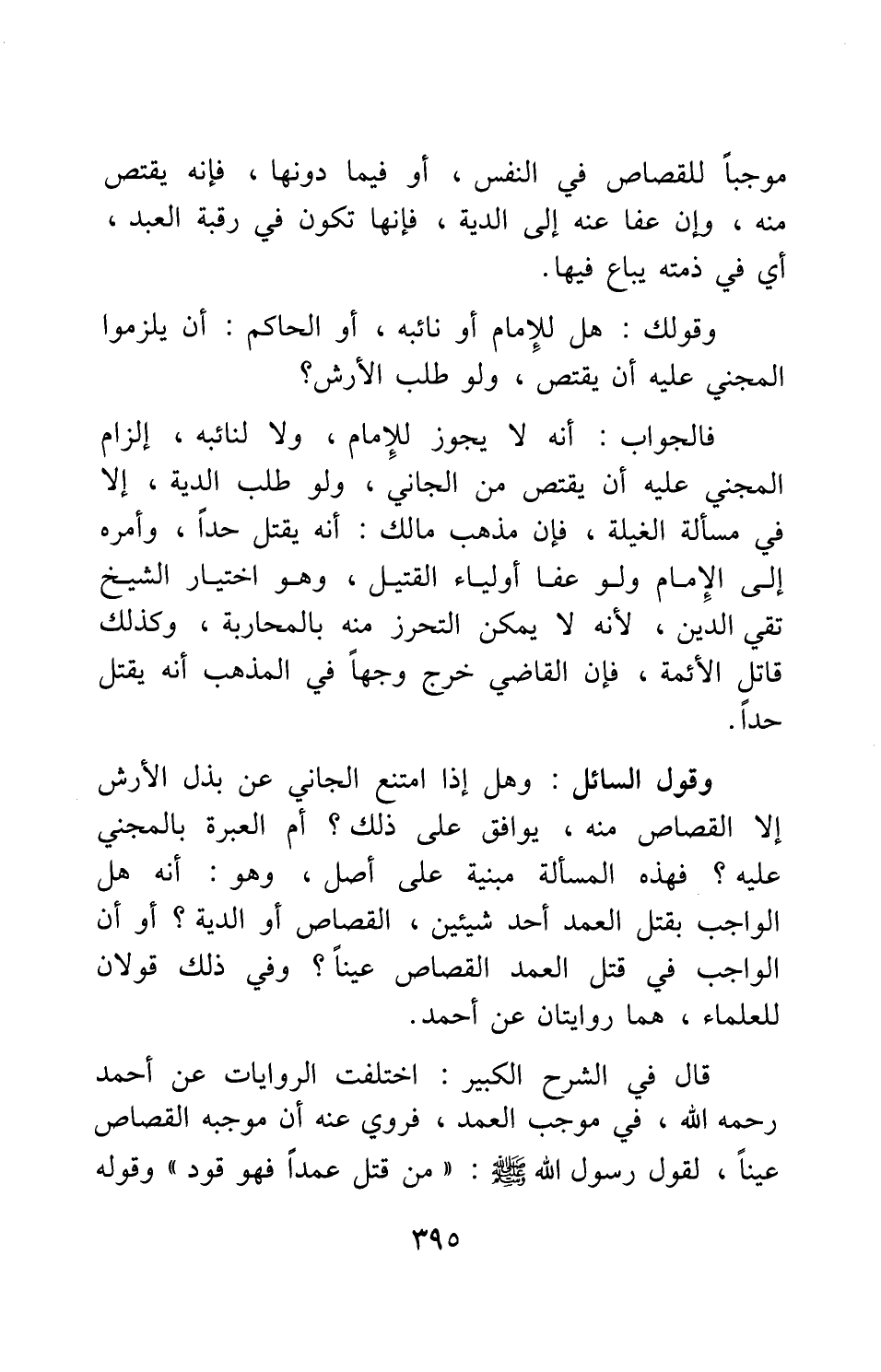 قال في الشرح الكبير: اختلفت الروايات عن أحمد، رحمه الله، في موجب العمد، فروي عنه: أن موجبه القصاص عيناً، لقول رسول الله صلى الله عليه وسلم: "من قتل عمداً فهو قَوَدٌ " 1، وقوله