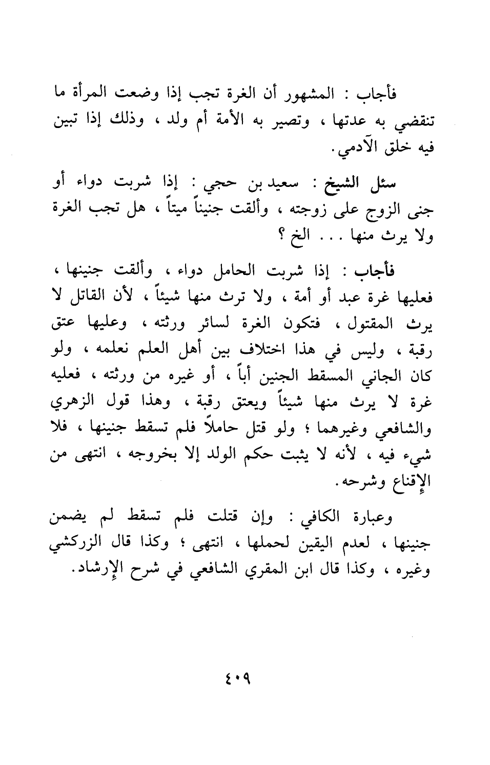 سئل الشيخ سعيد بن حجي: إذا شربت دواء أو جنى الزوج على زوجته وألقت جنيناً ميتاً، هل تجب الغرة ولا يرث منها ... إلخ؟