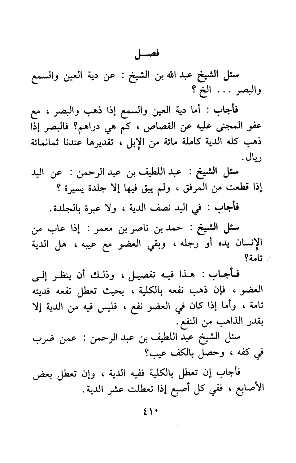 سئل الشيخ عبد الله بن الشيخ: عن دية العين والسمع والبصر ... إلخ؟