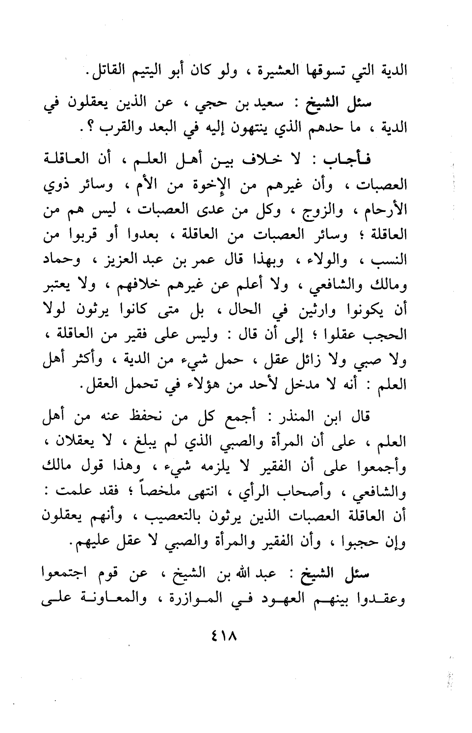 سئل الشيخ سعيد بن حجي: عن الذين يعقلون في الدية، ما حدهم الذي ينتهون إليه في البعد والقرب؟