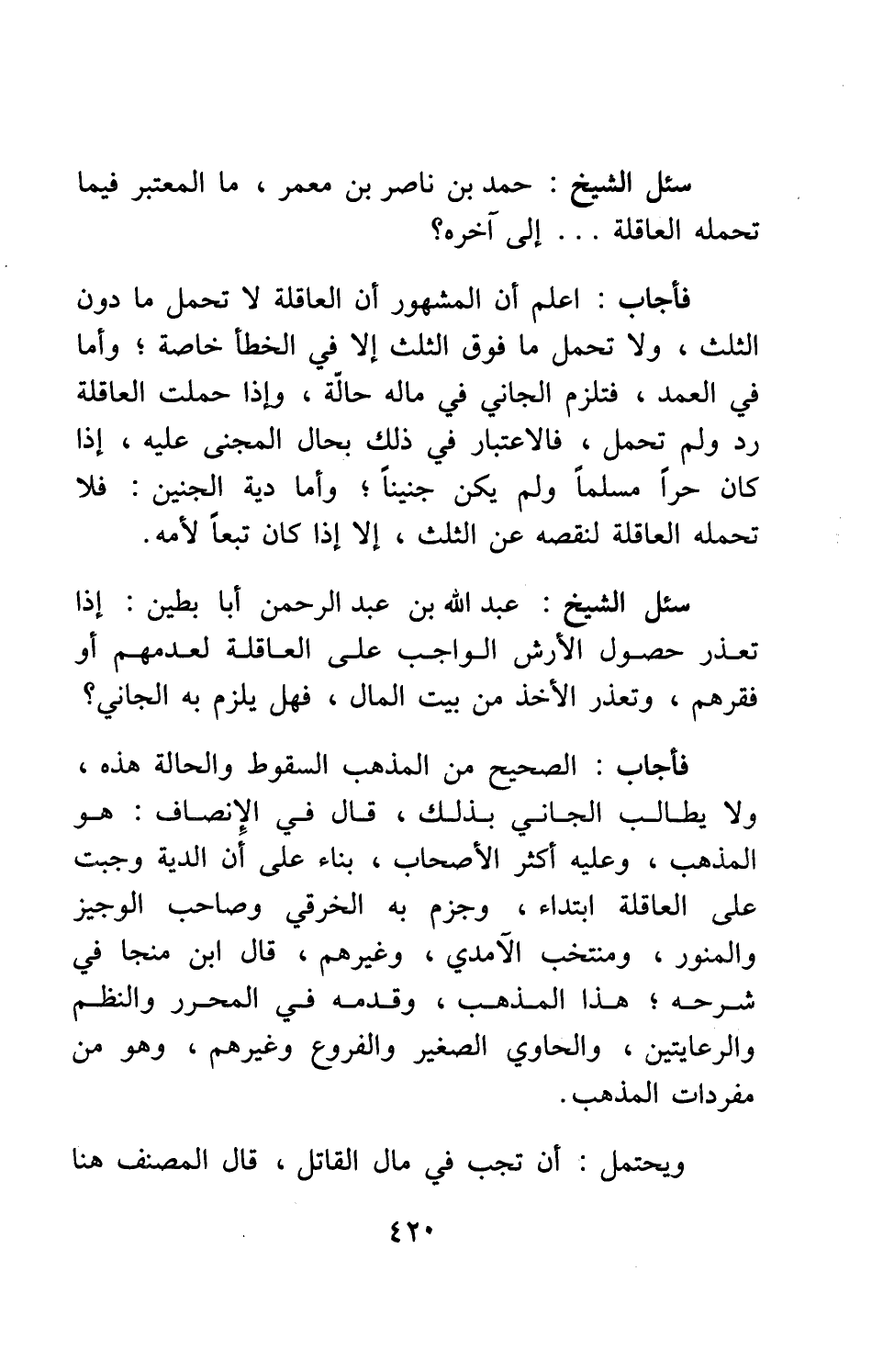 سئل الشيخ حمد بن ناصر بن معمر: ما المعتبر فيما تحمله العاقلة ... إلخ؟