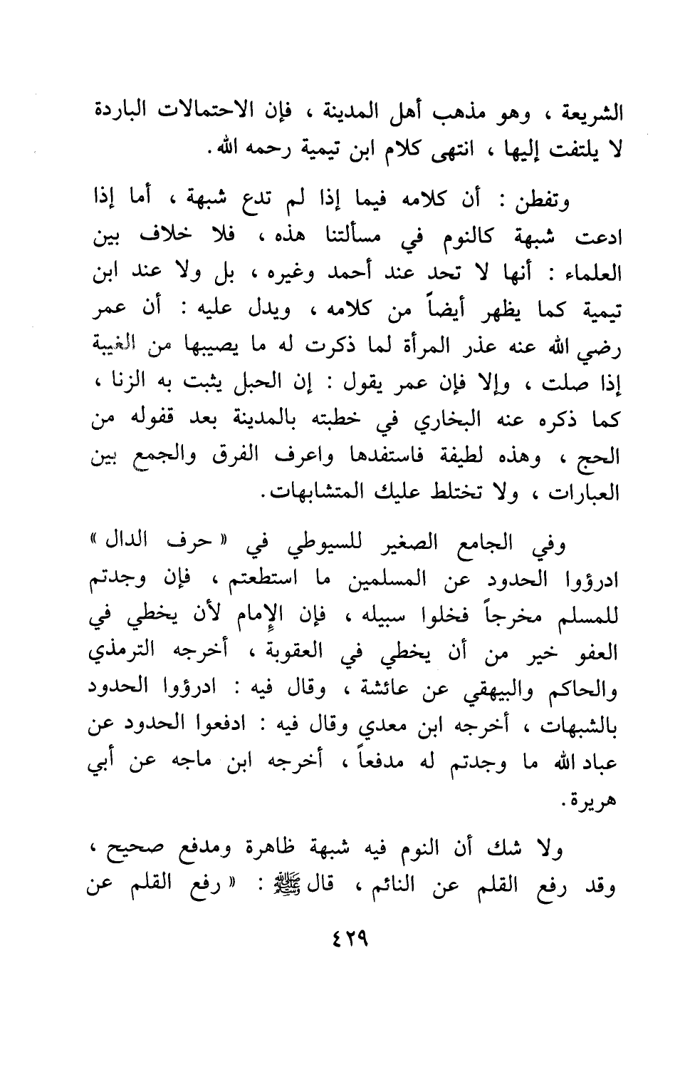 الشريعة، وهو مذهب أهل المدينة، فإن الاحتمالات الباردة لا يلتفت إليها. انتهى كلام ابن تيمية، رحمه الله.