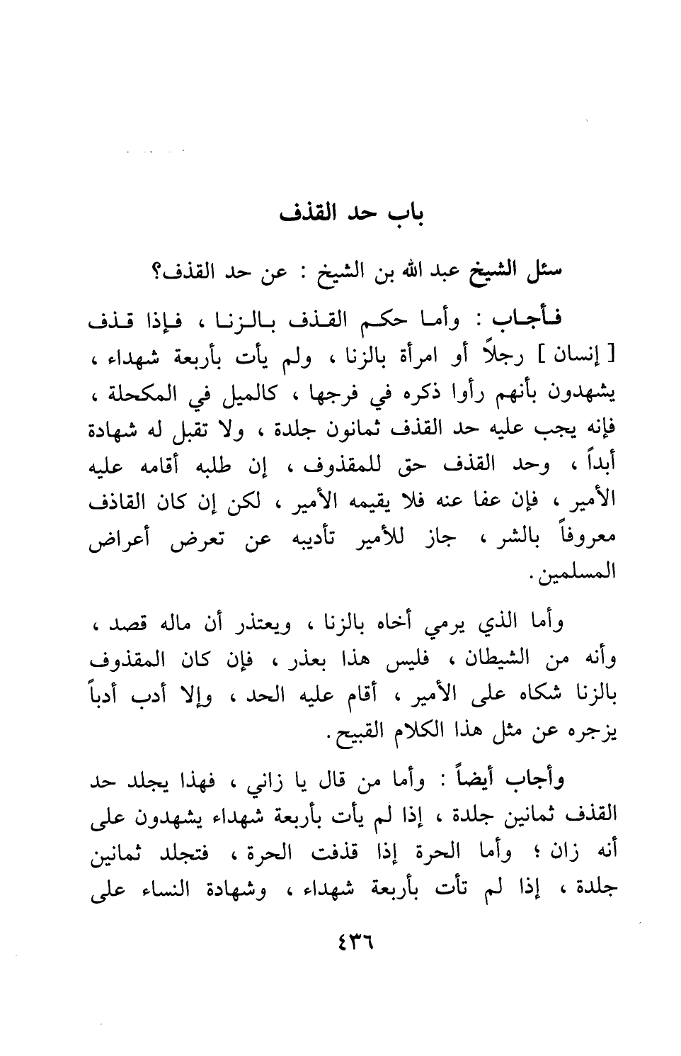سئل الشيخ عبد الله بن الشيخ: عن حد القذف؟
