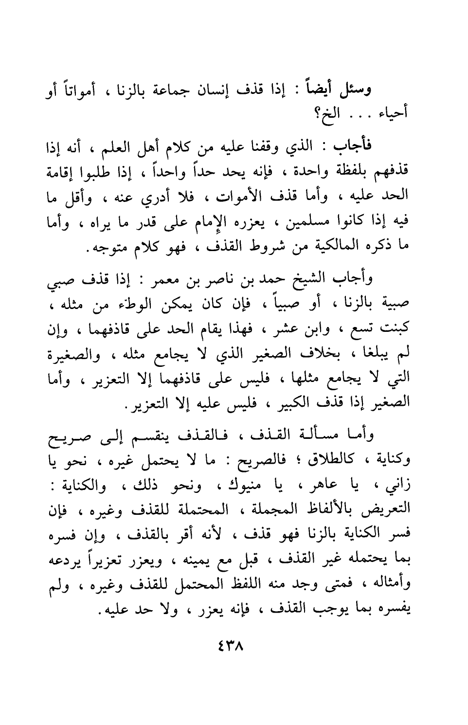 وسئل أيضاً: إذا قذف إنسان جماعة بالزنى أمواتاً أو أحياء ... إلخ؟