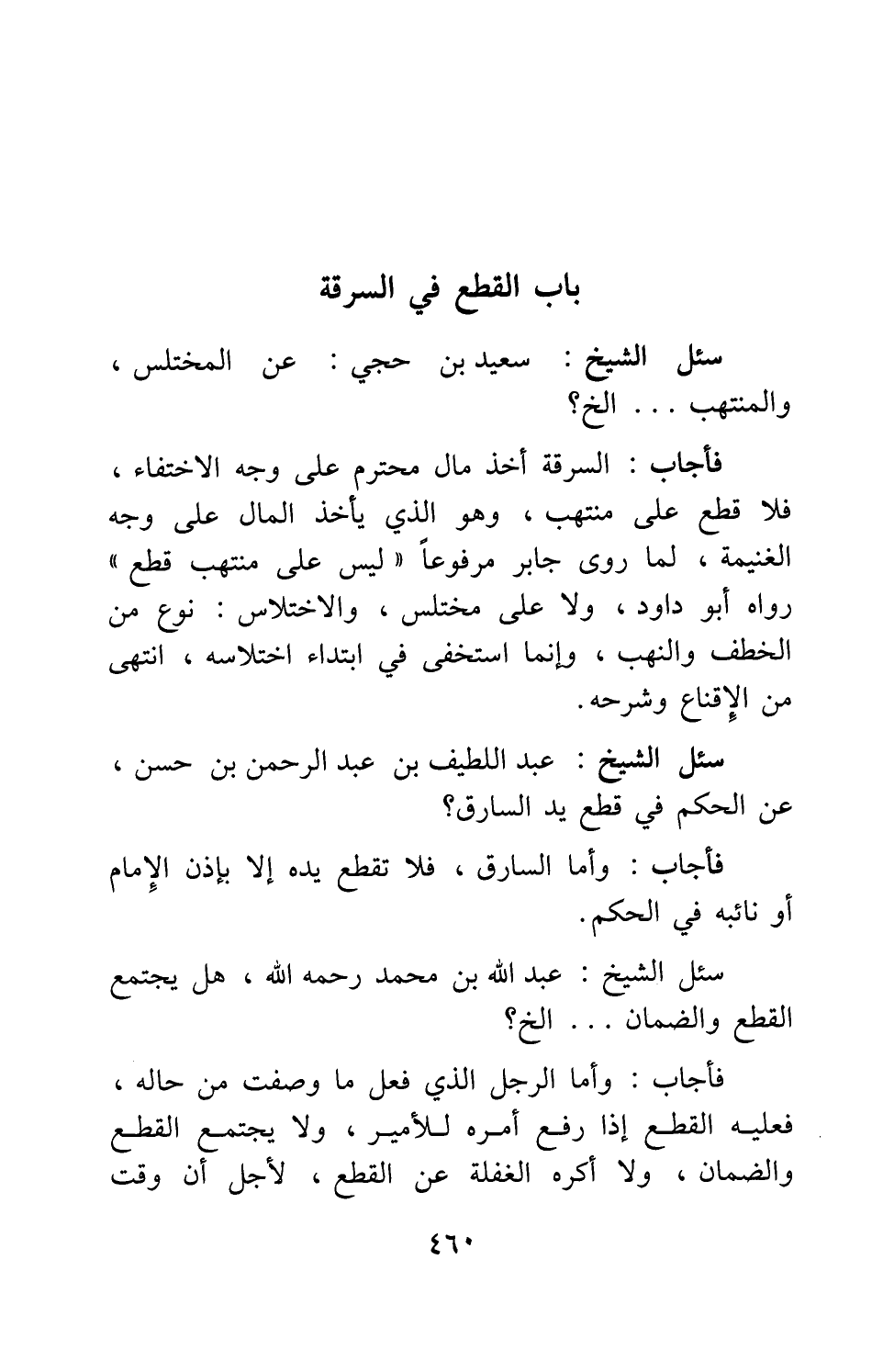 سئل الشيخ عبد اللطيف بن عبد الرحمن بن حسن: عن الحكم في قطع يد السارق؟