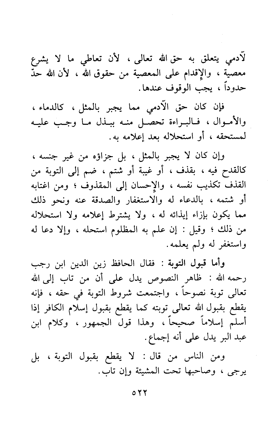 وأما قبول التوبة، فقال الحافظ زين الدين بن رجب، رحمه الله: ظاهر النصوص يدل على أن من تاب إلى الله تعالى توبة نصوحاً، واجتمعت شروط التوبة في حقه، فإنه يقطع بقبول الله تعالى توبته كما يقطع بقبول إسلام الكافر إذا أسلم إسلاماً صحيحاً؛ وهذا قول الجمهور، وكلام ابن عبد البر يدل على أنه إجماع. ومن الناس من قال: لا يقطع بقبول التوبة، بل يرجى، وصاحبها تحت المشيئة وإن تاب.