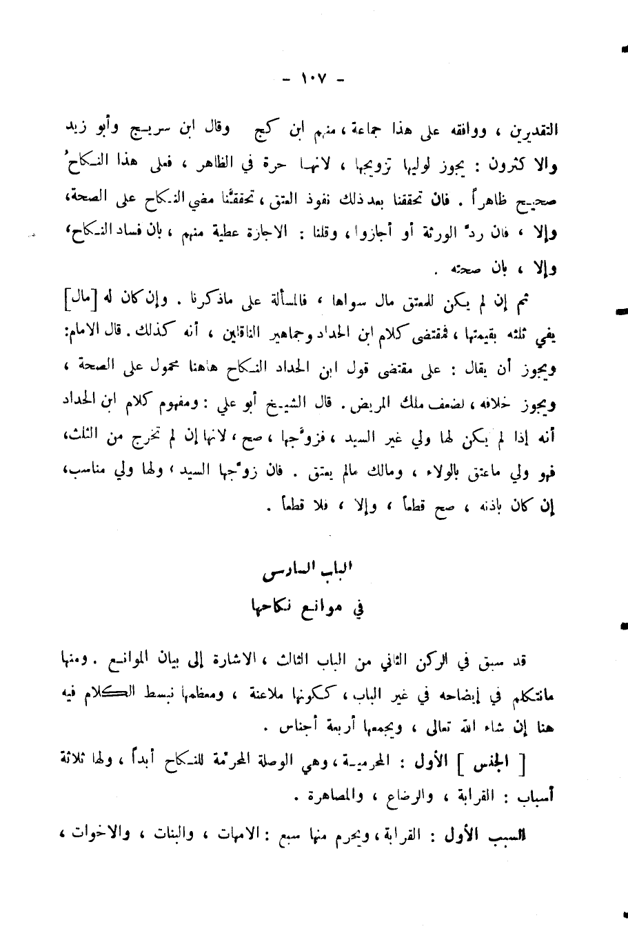 الْبَابُ السَّادِسُ فِي مَوَانِعِ نِكَاحِهَا
