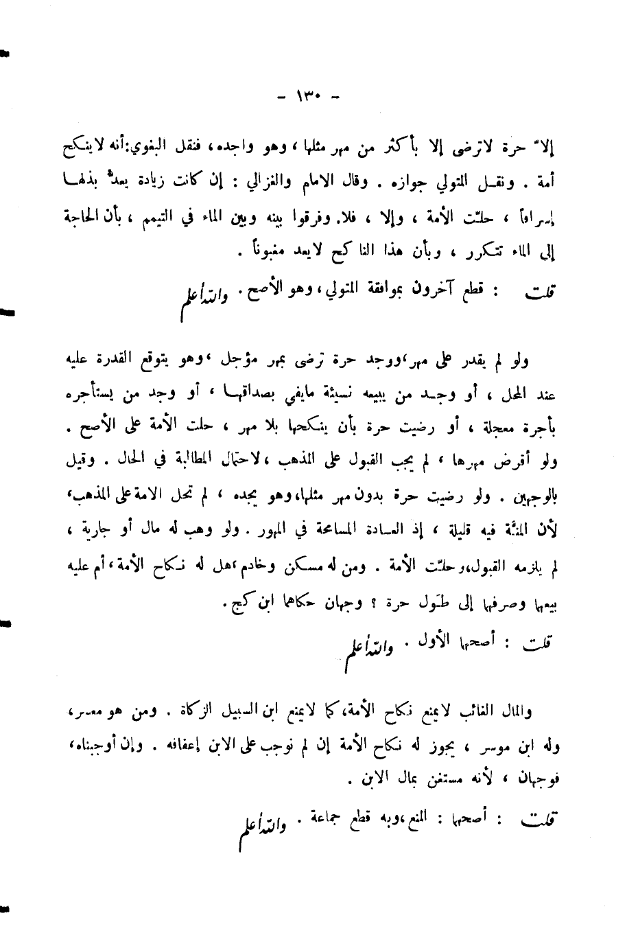 إِلَّا حُرَّةً لَا تَرْضَى إِلَّا بِأَكْثَرَ مِنْ مَهْرِ مِثْلِهَا، وَهُوَ وَاجِدُهُ، فَنَقَلَ الْبَغَوِيُّ: أَنَّهُ لَا يَنْكِحُ أَمَةً. وَنَقَلَ الْمُتَوَلِّي جَوَازَهُ. وَقَالَ الْإِمَامُ وَالْغَزَالِيُّ: إِنْ كَانَتْ زِيَادَةً يُعَدُّ بَذْلُهَا إِسْرَافًا، حَلَّتِ الْأَمَةُ، وَإِلَّا، فَلَا. وَفَرَّقُوا بَيْنَهُ وَبَيْنَ الْمَاءِ فِي التَّيَمُّمِ، بِأَنَّ الْحَاجَةَ إِلَى الْمَاءِ تَتَكَرَّرُ، وَبِأَنَّ هَذَا النَّاكِحَ لَا يُعَدُّ مَغْبُونًا.