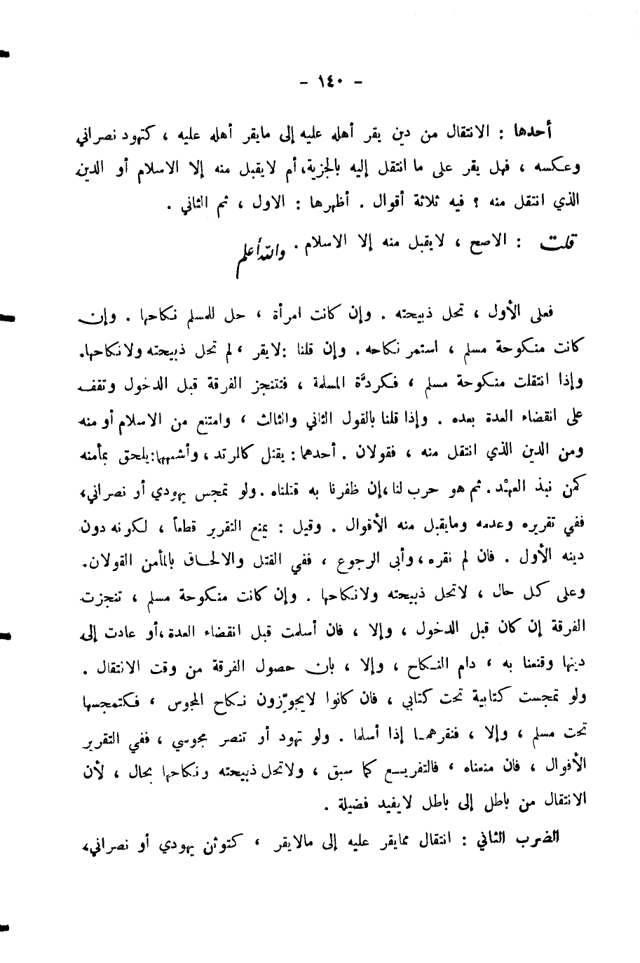 أَحَدُهَا: الِانْتِقَالُ مِنْ دِينٍ يُقَرُّ أَهْلُهُ عَلَيْهِ إِلَى مَا يُقَرُّ أَهْلُهُ عَلَيْهِ، كَتَهَوُّدِ نَصْرَانِيٍّ وَعَكْسِهِ، فَهَلْ يُقَرُّ عَلَى مَا انْتَقَلَ إِلَيْهِ بِالْجِزْيَةِ، أَمْ لَا يُقْبَلُ مِنْهُ إِلَّا الْإِسْلَامُ أَوِ الدِّينُ الَّذِي انْتَقَلَ مِنْهُ؟ فِيهِ ثَلَاثَةُ أَقْوَالٍ. أَظْهَرُهَا: الْأَوَّلُ، ثُمَّ الثَّانِي.