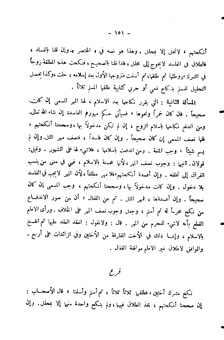 الْمَسْأَلَةُ الثَّانِيَةُ: الَّتِي يُقَرَّرُ نِكَاحُهَا بَعْدَ الْإِسْلَامِ، لَهَا الْمَهْرُ الْمُسَمَّى إِنْ كَانَ صَحِيحًا. فَإِنْ كَانَ خَمْرًا وَنَحْوَهَا، فَسَيَأْتِي حُكْمُ مُهُورِهِمُ الْفَاسِدَةِ إِنْ شَاءَ اللَّهُ تَعَالَى. وَمَنِ انْدَفَعَ نِكَاحُهَا بِإِسْلَامِ الزَّوْجِ، إِنْ لَمْ تَكُنْ مَدْخُولًا بِهَا، وَصَحَّحْنَا أَنْكِحَتَهُمْ، فَلَهَا نِصْفُ الْمُسَمَّى إِنْ كَانَ صَحِيحًا. وَإِنْ كَانَ فَاسِدًا، فَنِصْفُ مَهْرِ الْمِثْلِ. وَإِنْ لَمْ يُسَمِّ شَيْئًا، وَجَبَ الْمُتْعَةُ. وَمَنِ انْدَفَعَتْ بِإِسْلَامِهَا، فَلَا شَيْءَ لَهَا عَلَى الْمَشْهُورِ. وَقِيلَ: قَوْلَانِ. ثَانِيهِمَا: وُجُوبُ نِصْفِ الْمَهْرِ، لِأَنَّهَا مُحْسِنَةٌ بِالْإِسْلَامِ، فَهِيَ فِي مَعْنَى مَنْ يَنْسُبُ الْفِرَاقَ إِلَى تَخَلُّفِهِ. وَإِنْ أَفْسَدْنَا أَنْكِحَتَهُمْ، فَلَا مَهْرَ مُطْلَقًا، لِأَنَّ الْمَهْرَ لَا يَجِبُ فِي الْفَاسِدِ بِلَا دُخُولٍ. وَإِنْ كَانَتْ مَدْخُولًا بِهَا، وَصَحَّحْنَا أَنْكِحَتَهُمْ، وَجَبَ الْمُسَمَّى إِنْ كَانَ صَحِيحًا. وَإِنْ أَفْسَدْنَاهَا، فَمَهْرُ الْمِثْلِ. ثُمَّ عَنِ الْقَفَّالِ، أَنَّ مِنْ صِوَرِ الِانْدِفَاعِ مَنْ نَكَحَ مُحَرَّمًا لَهُ ثُمَّ أَسْلَمَ، وَجَعَلَ وُجُوبَ نِصْفِ الْمَهْرِ عَلَى الْخِلَافِ. وَرَأَى الْإِمَامُ الْقَطْعَ بِأَنَّهُ لَا شَيْءَ لِلْمَحْرَمِ مِنَ الْمَهْرِ. قَالَ: وَلَا نَقُولُ: انْعَقَدَ الْعَقْدُ عَلَيْهَا ثُمَّ انْفَسَخَ بِالْإِسْلَامِ، وَإِنَّمَا ذَلِكَ فِي الْأُخْتِ الْمُفَارَقَةِ مِنَ الْأُخْتَيْنِ وَفِي الزَّائِدَاتِ عَلَى أَرْبَعٍ. وَالْمُوَافِقُ لِإِطْلَاقِ غَيْرِ الْإِمَامِ مُوَافَقَةُ الْقَفَّالِ.