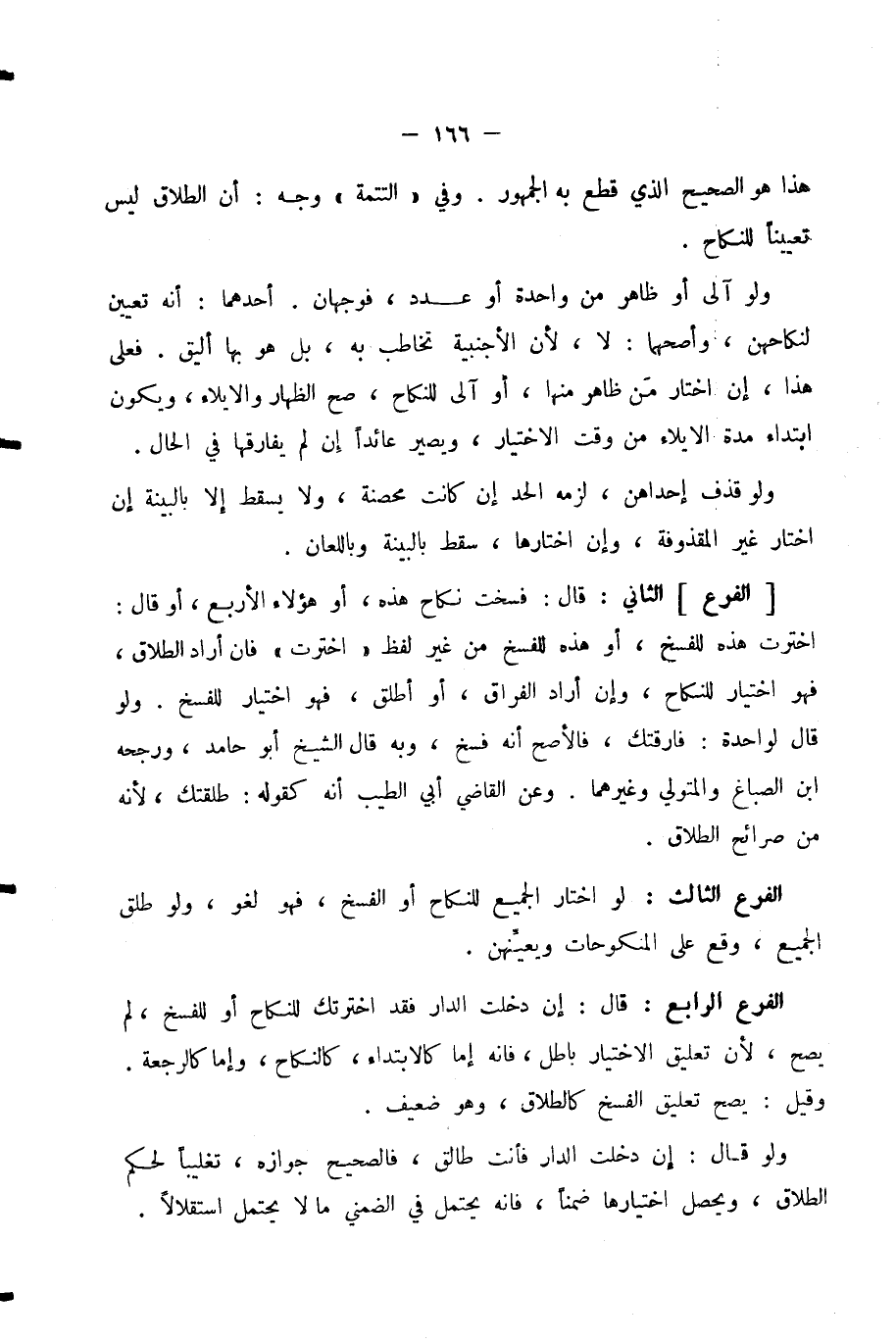 [الْفَرْعُ] الثَّانِي: قَالَ: فَسَخْتُ نِكَاحَ هَذِهِ، أَوْ هَؤُلَاءِ الْأَرْبَعِ، أَوْ قَالَ: اخْتَرْتُ هَذِهِ لِلْفَسْخِ، أَوْ هَذِهِ لِلْفَسْخِ مِنْ غَيْرِ لَفْظٍ اخْتَرْتُ فَإِنْ أَرَادَ الطَّلَاقَ، فَهُوَ اخْتِيَارٌ لِلنِّكَاحِ، وَإِنْ أَرَادَ الْفِرَاقَ، أَوْ أَطْلَقَ، فَهُوَ اخْتِيَارٌ لِلْفَسْخِ. وَلَوْ قَالَ لِوَاحِدَةٍ: فَارَقْتُكِ فَالْأَصَحُّ أَنَّهُ فَسْخٌ، وَبِهِ قَالَ الشَّيْخُ أَبُو حَامِدٍ، وَرَجَّحَهُ ابْنُ الصَّبَّاغِ وَالْمُتَوَلِّي وَغَيْرُهُمَا. وَعَنِ الْقَاضِي أَبِي الطَّيِّبِ أَنَّهُ كَقَوْلِهِ: طَلَّقْتُكِ ; لِأَنَّهُ مِنْ صَرَائِحِ الطَّلَاقِ.
