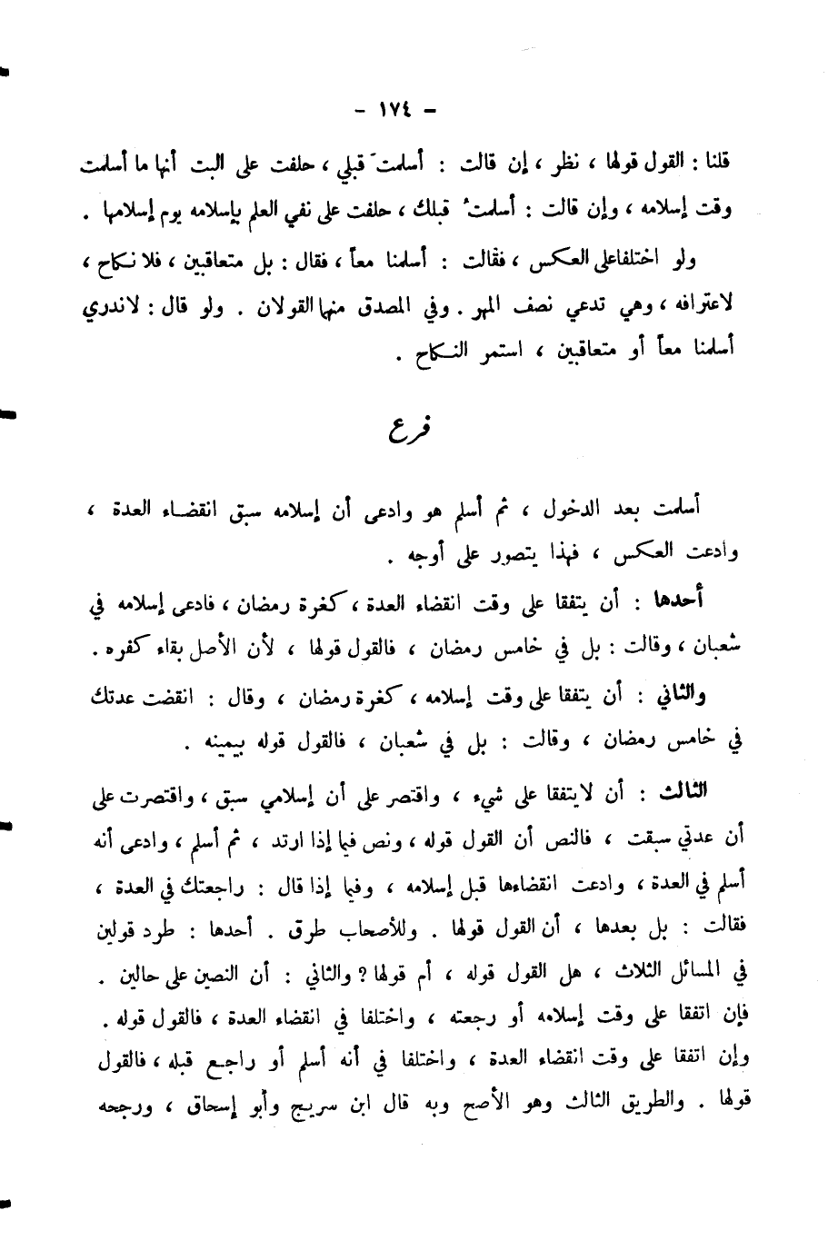 الثَّالِثُ: أَنْ لَا يَتَّفِقَا عَلَى شَيْءٍ، وَاقْتَصَرَ عَلَى أَنَّ إِسْلَامِي سَبَقَ، وَاقْتَصَرَتْ عَلَى أَنَّ عِدَّتِي سَبَقَتْ، فَالنَّصُّ أَنَّ الْقَوْلَ قَوْلُهُ، وَنَصٌّ فِيمَا إِذَا ارْتَدَّ، ثُمَّ أَسْلَمَ، وَادَّعَى أَنَّهُ أَسْلَمَ فِي الْعِدَّةِ، وَادَّعَتِ انْقِضَاءَهَا قَبْلَ إِسْلَامِهِ، وَفِيمَا إِذَا قَالَ: رَاجَعْتُكِ فِي الْعِدَّةِ، فَقَالَتْ: بَلْ بَعْدَهَا، أَنَّ الْقَوْلَ قَوْلُهَا. وَلِلْأَصْحَابِ طُرُقٌ.