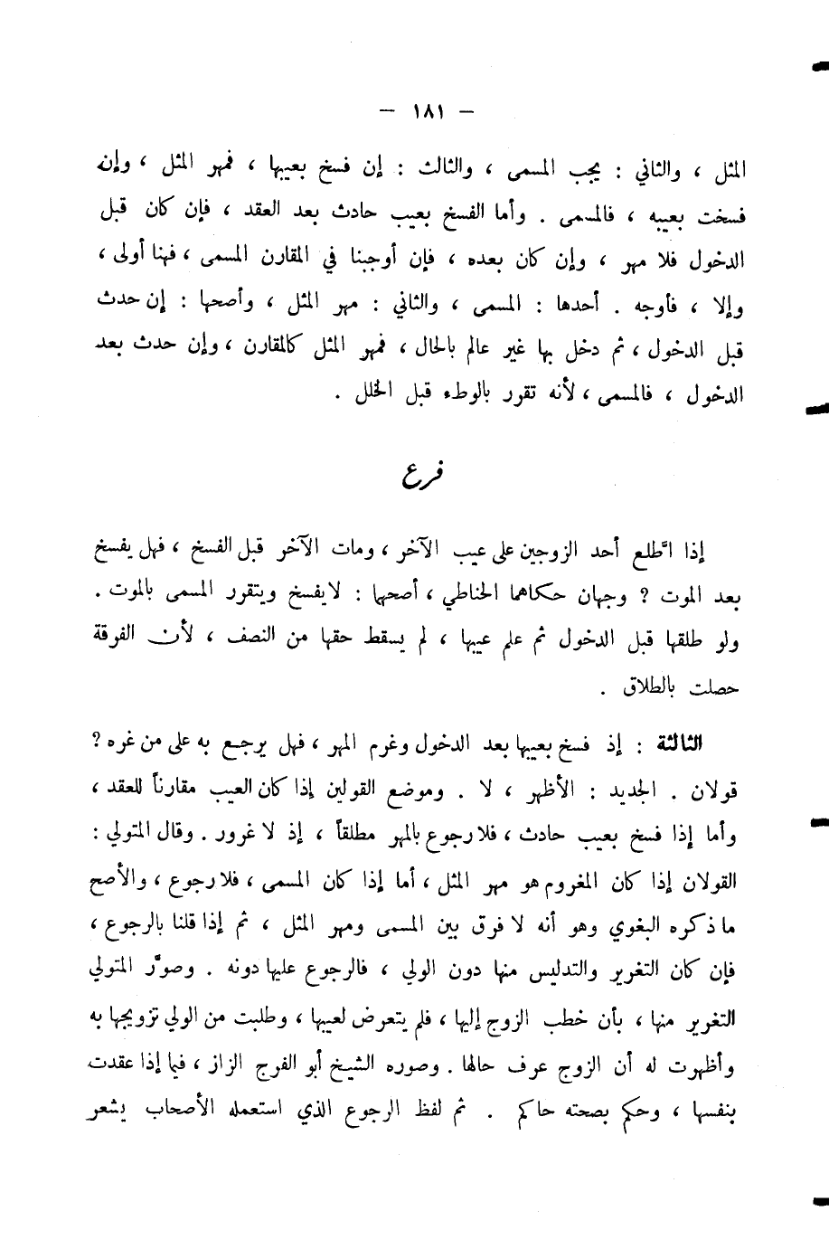 الثَّالِثَةُ: إِذَا فُسِخَ بِعَيْبِهَا بَعْدَ الدُّخُولِ وَغُرِّمَ الْمَهْرَ، فَهَلْ يَرْجِعُ بِهِ عَلَى مَنْ غَرَّهُ؟ قَوْلَانِ. الْجَدِيدُ: الْأَظْهَرُ، لَا. وَمَوْضِعُ الْقَوْلَيْنِ إِذَا كَانَ الْعَيْبُ مُقَارِنًا لِلْعَقْدِ، وَأَمَّا إِذَا فُسِخَ بِعَيْبٍ حَادِثٍ، فَلَا رُجُوعَ بِالْمَهْرِ مُطْلَقًا، إِذْ لَا غُرُورَ. وَقَالَ الْمُتَوَلِّي: الْقَوْلَانِ إِذَا كَانَ الْمَغْرُومُ هُوَ مَهْرُ الْمِثْلِ، أَمَّا إِذَا كَانَ الْمُسَمَّى، فَلَا رُجُوعَ، وَالْأَصَحُّ مَا ذَكَرَهُ الْبَغَوِيُّ وَهُوَ أَنَّهُ لَا فَرْقَ بَيْنَ الْمُسَمَّى وَمَهْرِ الْمِثْلِ، ثُمَّ إِذَا قُلْنَا بِالرُّجُوعِ، فَإِنْ كَانَ التَّغْرِيرُ وَالتَّدْلِيسُ مِنْهَا دُونَ الْوَلِيِّ، فَالرُّجُوعُ عَلَيْهَا دُونَهُ. وَصَوَّرَ الْمُتَوَلِّي التَّغْرِيرَ مِنْهَا، بِأَنْ خُطِبَ الزَّوْجُ إِلَيْهَا، فَلَمْ يَتَعَرَّضْ لِعَيْبِهَا، وَطَلَبَتْ مِنَ الْوَلِيِّ تَزْوِيجَهَا بِهِ وَأَظْهَرَتْ لَهُ أَنَّ الزَّوْجَ عَرَفَ حَالَهَا.