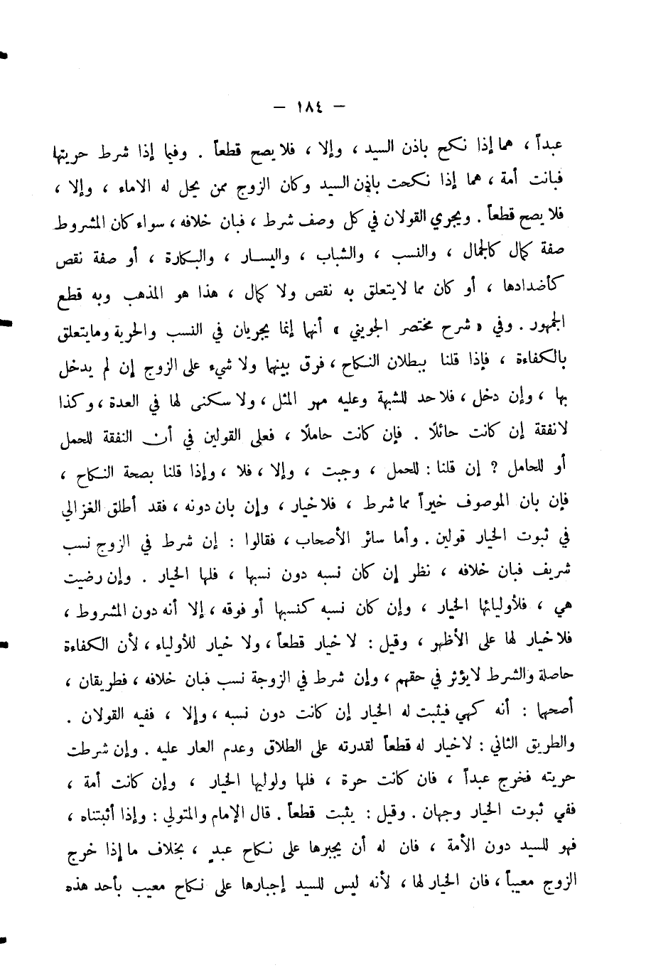 عَبْدًا، هُمَا إِذَا نُكِحَ بِإِذْنِ السَّيِّدِ، وَإِلَّا، فَلَا يَصِحُّ قَطْعًا. وَفِيمَا إِذَا شَرَطَ حُرِّيَّتَهَا فَبَانَتْ أَمَةً، هُمَا إِذَا نُكِحَتْ بِإِذْنِ السَّيِّدِ وَكَانَ الزَّوْجُ مِمَّنْ يَحِلُّ لَهُ الْإِمَاءُ، وَإِلَّا، فَلَا يَصِحُّ قَطْعًا. وَيَجْرِي الْقَوْلَانِ فِي كُلِّ وَصْفِ شَرْطٍ، فَبَانَ خِلَافُهُ، سَوَاءٌ كَانَ الْمَشْرُوطُ صِفَةَ كَمَالٍ كَالْجَمَالِ، وَالنَّسَبِ، وَالشَّبَابِ، وَالْيَسَارِ، وَالْبَكَارَةِ، أَوْ صِفَةَ نَقْصٍ كَأَضْدَادِهَا، أَوْ كَانَ مِمَّا لَا يَتَعَلَّقُ بِهِ نَقْصٌ وَلَا كَمَالٌ، هَذَا هُوَ الْمَذْهَبُ وَبِهِ قَطَعَ الْجُمْهُورُ.