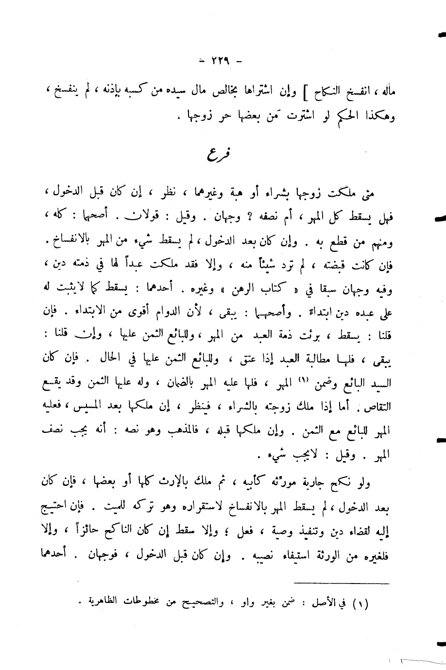 مَالِهِ، انْفَسَخَ النِّكَاحُ] وَإِنِ اشْتَرَاهَا بِخَالِصِ مَالِ سَيِّدِهِ مِنْ كَسْبِهِ بِإِذْنِهِ، لَمْ يَنْفَسِخْ، وَهَكَذَا الْحُكْمُ لَوِ اشْتَرَتْ مَنْ بَعْضُهَا حُرٌّ زَوْجَهَا.