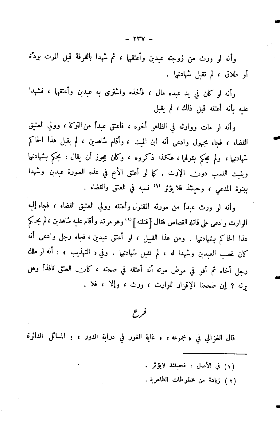 قَالَ الْغَزَالِيُّ فِي «مَجْمُوعِهِ» «غَايَةُ الْغَوْرِ فِي دِرَايَةِ الدَّوْرِ» : الْمَسَائِلُ الدَّائِرَةُ