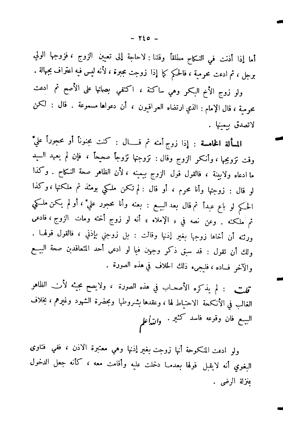 قُلْتُ: لَمْ يَذْكُرْهُ الْأَصْحَابُ فِي هَذِهِ الصُّورَةِ، وَلَا يَصِحُّ مَجِيئُهُ لِأَنَّ الظَّاهِرَ الْغَالِبَ فِي الْأَنْكِحَةِ الِاحْتِيَاطُ لَهَا، وَعَقْدُهَا بِشُرُوطِهَا وَبِحَضْرَةِ الشُّهُودِ وَغَيْرِهِمْ، بِخِلَافِ الْبَيْعِ فَإِنَّ وُقُوعَهُ فَاسِدٌ كَثِيرٌ. وَاللَّهُ أَعْلَمُ.