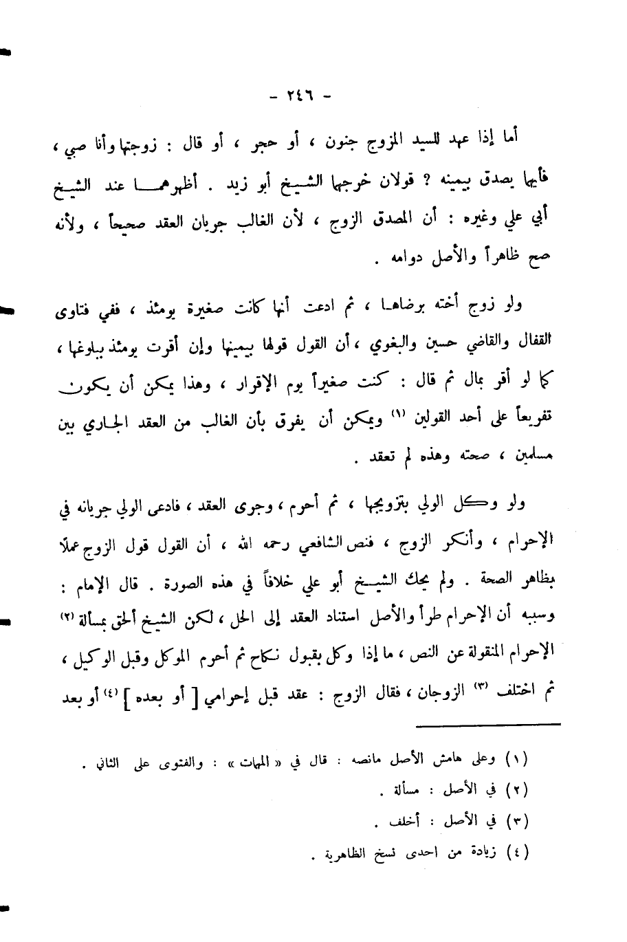 أَمَّا إِذَا عُهِدَ لِلسَّيِّدِ الْمُزَوَّجِ جُنُونٌ، أَوْ حَجْرٌ، أَوْ قَالَ: زَوَّجْتُهَا وَأَنَا صَبِيٌّ، فَأَيُّهُمَا يُصَدَّقُ بِيَمِينِهِ؟ قَوْلَانِ خَرَّجَهُمَا الشَّيْخُ أَبُو زَيْدٍ. أَظْهَرُهُمَا عِنْدَ الشَّيْخِ أَبِي عَلِيٍّ وَغَيْرِهِ: أَنَّ الْمُصَدَّقَ الزَّوْجُ ; لِأَنَّ الْغَالِبَ جَرَيَانُ الْعَقْدِ صَحِيحًا، وَلِأَنَّهُ صَحَّ ظَاهِرًا وَالْأَصْلُ دَوَامُهُ.