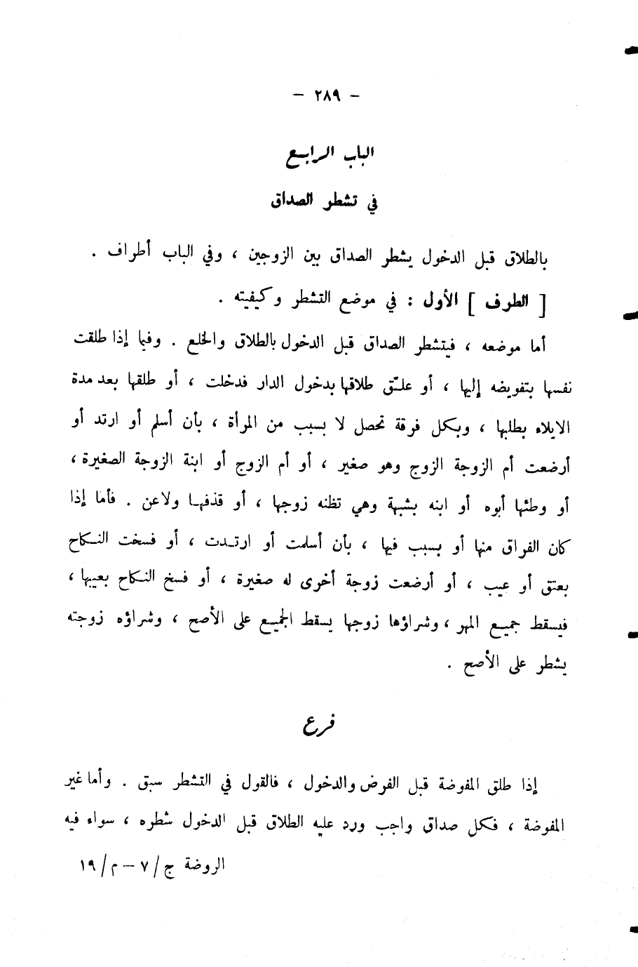 الْبَابُ الرَّابِعُ فِي تَشَطُّرِ الصَّدَاقِ