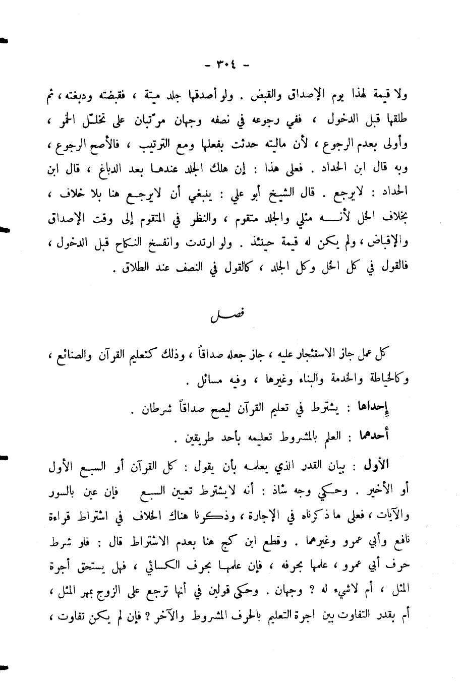 إِحْدَاهَا: يُشْتَرَطُ فِي تَعْلِيمِ الْقُرْآنِ لِيَصِحَّ صَدَاقًا شَرْطَانِ.