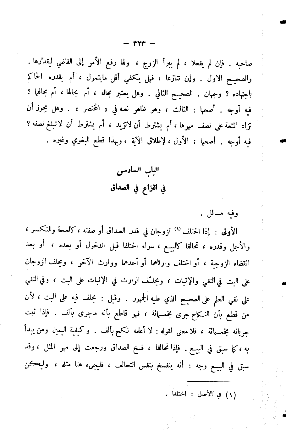الْبَابُ السَّادِسُ فِي النِّزَاعِ فِي الصَّدَاقِ.