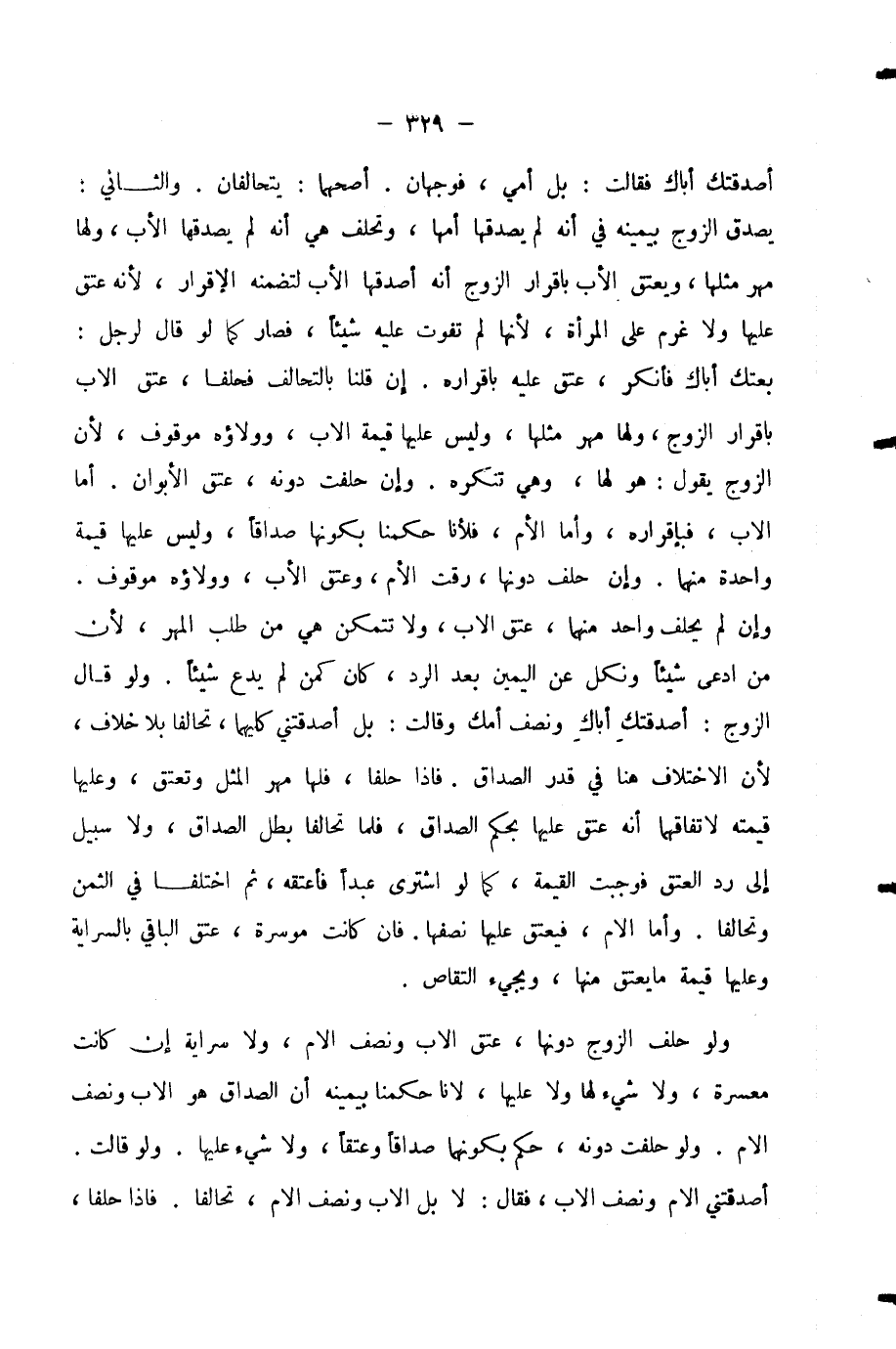 وَلَوْ قَالَ الزَّوْجُ: أَصْدَقْتُكِ أَبَاكِ وَنِصْفَ أُمِّكِ وَقَالَتْ: بَلْ أَصْدَقْتَنِي كِلَيْهِمَا، تَحَالَفَا بِلَا خِلَافٍ؛ لِأَنَّ الِاخْتِلَافَ هُنَا فِي قَدْرِ الصَّدَاقِ. فَإِذَا حَلَفَا، فَلَهَا مَهْرُ الْمِثْلِ وَتُعْتِقُ، وَعَلَيْهَا قِيمَتُهُ لِاتِّفَاقِهِمَا أَنَّهُ عَتَقَ عَلَيْهَا بِحُكْمِ الصَّدَاقِ، فَلَمَّا تَحَالَفَا بَطَلَ الصَّدَاقُ، وَلَا سَبِيلَ إِلَى رَدِّ الْعِتْقِ فَوَجَبَتِ الْقِيمَةُ، كَمَا لَوِ اشْتَرَى عَبْدًا فَأَعْتَقَهُ، ثُمَّ اخْتَلَفَا فِي الثَّمَنِ وَتَحَالَفَا.