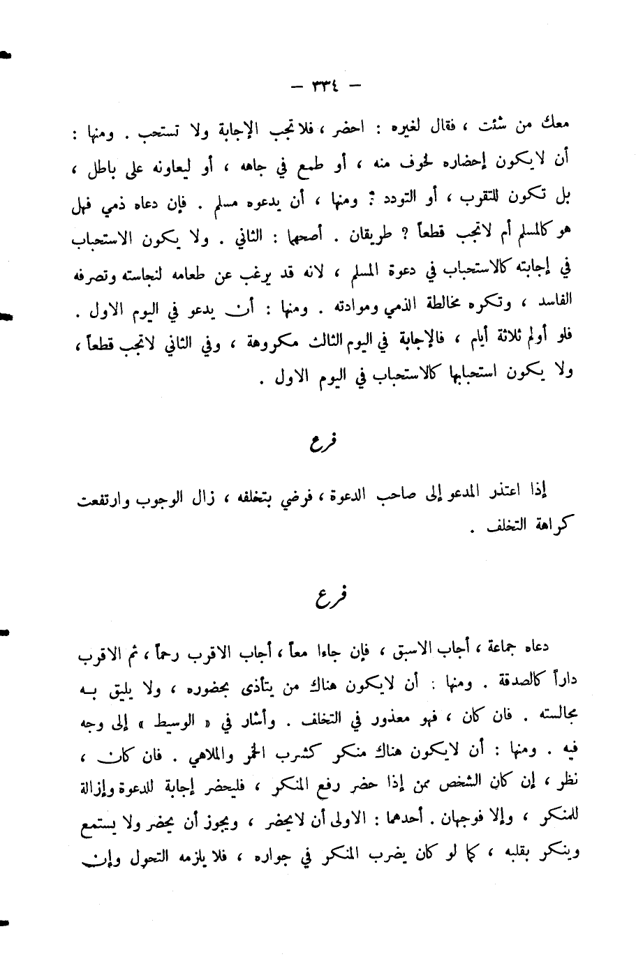مَعَكَ مَنْ شِئْتَ، فَقَالَ لِغَيْرِهِ: احْضَرْ، فَلَا تَجِبُ الْإِجَابَةُ وَلَا تُسْتَحَبُّ. وَمِنْهَا: أَنْ لَا يَكُونَ إِحْضَارُهُ لِخَوْفٍ مِنْهُ، أَوْ طَمَعٍ فِي جَاهِهِ، أَوْ لِيُعَاوِنَهُ عَلَى بَاطِلٍ، بَلْ تَكُونُ لِلتَّقَرُّبِ، أَوِ التَّوَدُّدِ.