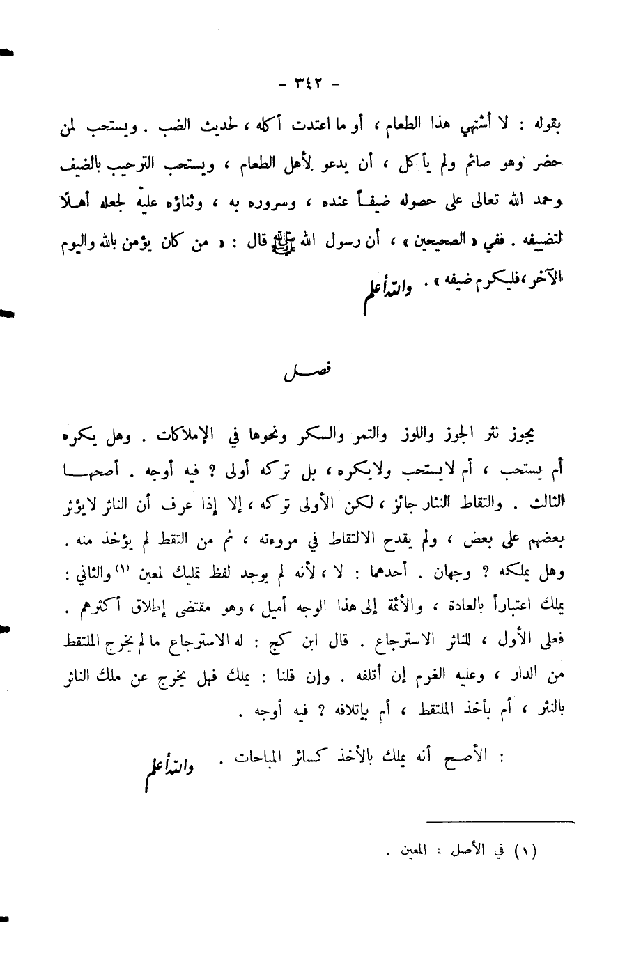 أَصَحُّهَا الثَّالِثُ. وَالْتِقَاطُ النِّثَارِ جَائِزٌ، لَكِنَّ الْأَوْلَى تَرْكُهُ، إِلَّا إِذَا عُرِفَ أَنَّ النَّاثِرَ لَا يُؤْثِرُ بَعْضَهُمْ عَلَى بَعْضٍ، وَلَمْ يَقْدَحِ الِالْتِقَاطُ فِي مُرُوءَتِهِ، ثُمَّ مَنِ الْتَقَطَ لَمْ يُؤْخَذْ مِنْهُ.