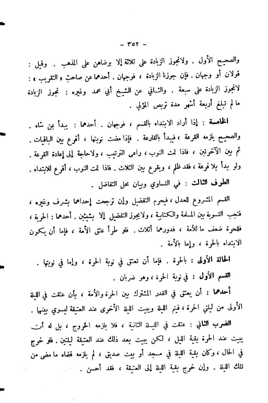 الْقَسْمُ الْأَوَّلُ: فِي نَوْبَةِ الْحُرَّةِ، وَهُوَ ضَرْبَانِ.