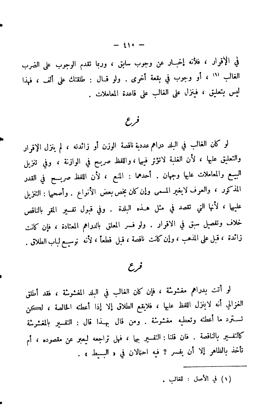 لَوْ كَانَ الْغَالِبُ فِي الْبَلَدِ دَرَاهِمَ عَدَدِيَّةً نَاقِصَةَ الْوَزْنِ أَوْ زَائِدَتَهُ، لَمْ يَنْزِلِ الْإِقْرَارُ وَالتَّعْلِيقُ عَلَيْهَا؛ لِأَنَّ الْغَلَبَةَ لَا تُؤَثِّرُ فِيهِمَا، وَاللَّفْظُ صَرِيحٌ فِي الْوَازِنَةِ، وَفِي تَنْزِيلِ الْبَيْعِ وَالْمُعَامَلَاتِ عَلَيْهَا وَجْهَانِ.