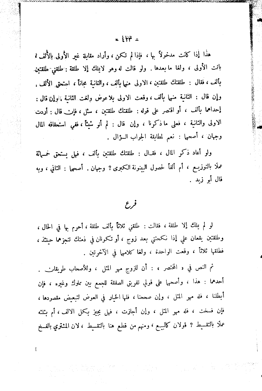 لَوْ لَمْ يَمْلِكْ إِلَّا طَلْقَةً، فَقَالَتْ: طَلِّقْنِي ثَلَاثًا بِأَلْفٍ، طَلْقَةً أُحَرَّمُ بِهَا فِي الْحَالِ، وَطَلْقَتَيْنِ يَقَعَانِ عَلَيَّ إِذَا نَكَحْتَنِي بَعْدَ زَوْجٍ، أَوْ تَكُونَانِ فِي ذِمَّتِكَ تُنْجِزُهُمَا حِينَئِذٍ، فَطَلَّقَهَا ثَلَاثًا، وَقَعَتِ الْوَاحِدَةُ، وَلَغَا كَلَامُهُمَا فِي الْأُخْرَتَيْنِ.