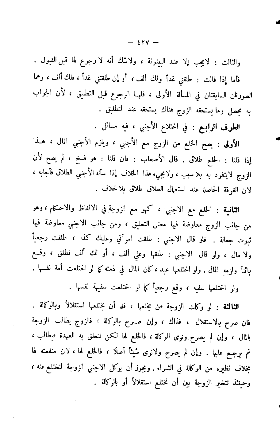 الطَّرَفُ الرَّابِعُ: فِي اخْتِلَاعِ الْأَجْنَبِيِّ، فِيهِ مَسَائِلُ.