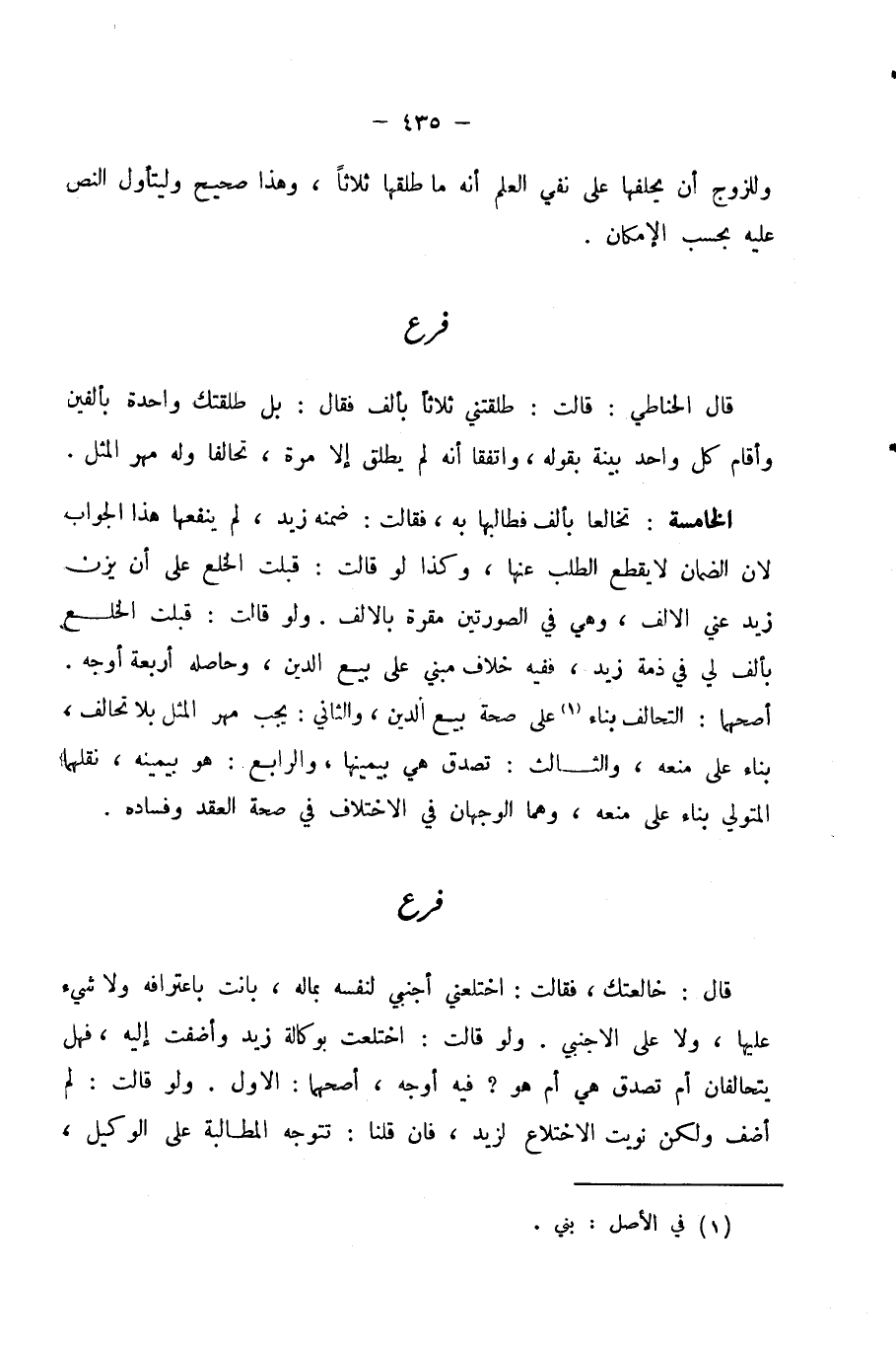 قَالَ الْحَنَّاطِيُّ: قَالَتْ: طَلَّقْتَنِي ثَلَاثًا بِأَلْفٍ فَقَالَ: بَلْ طَلَّقْتُكِ وَاحِدَةً بِأَلْفَيْنِ وَأَقَامَ كُلُّ وَاحِدٍ بَيِّنَةً بِقَوْلِهِ، وَاتَّفَقَا أَنَّهُ لَمْ يُطَلِّقْ إِلَّا مَرَّةً، تَحَالَفَا وَلَهُ مَهْرُ الْمِثْلِ.