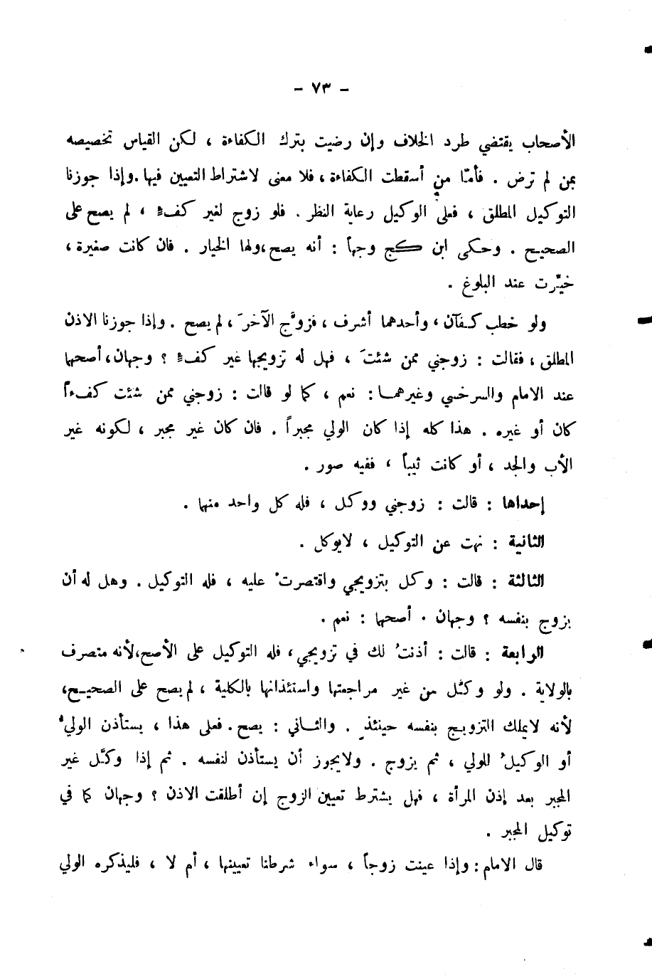 الْأَصْحَابِ يَقْتَضِي طَرْدَ الْخِلَافِ وَإِنْ رَضِيَتْ بِتَرْكِ الْكَفَاءَةِ، لَكِنَّ الْقِيَاسَ تَخْصِيصُهُ بِمَنْ لَمْ تَرْضَ. فَأَمَّا مَنْ أَسْقَطَتِ الْكَفَاءَةَ، فَلَا مَعْنَى لِاشْتِرَاطِ التَّعْيِينِ فِيهَا. وَإِذَا جَوَّزْنَا التَّوْكِيلَ الْمُطْلَقَ، فَعَلَى الْوَكِيلِ رِعَايَةُ النَّظَرِ. فَلَوْ زَوَّجَ لِغَيْرٍ كُفْءٍ، لَمْ يَصِحَّ عَلَى الصَّحِيحِ. وَحَكَى ابْنُ كَجٍّ وَجْهًا: أَنَّهُ يَصِحُّ، وَلَهَا الْخِيَارُ. فَإِنْ كَانَتْ صَغِيرَةً، خُيِّرَتْ عِنْدَ الْبُلُوغِ.