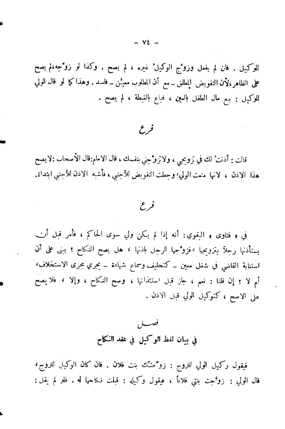 فِي بَيَانِ لَفْظِ الْوَكِيلِ فِي عَقْدِ النِّكَاحِ
