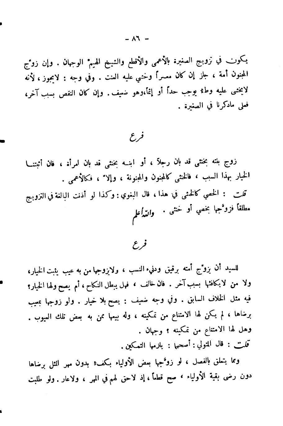 قُلْتُ: الْخَصِيُّ كَالْخُنْثَى فِي هَذَا، قَالَ الْبَغَوِيُّ: وَكَذَا لَوْ أَذِنَتِ الْبَالِغَةُ فِي التَّزْوِيجِ مُطْلَقًا فَزَوَّجَهَا بِخَصِيٍّ أَوْ خُنْثَى. - وَاللَّهُ أَعْلَمُ -.