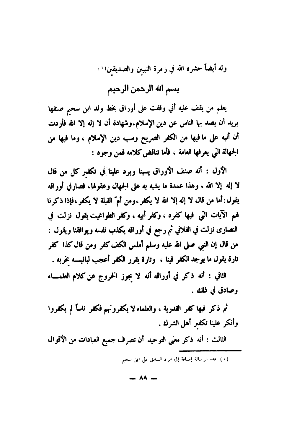 1 هذه الرسالة إضافة إلى الرد السابق على ابن سحيم.