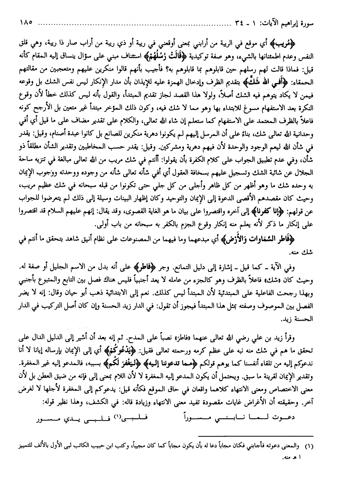 وقرأ زيد بن علي رضي الله تعالى عنهما «فاطر» نصبا على المدح. ثم إنه بعد أن أشير إلى الدليل الدال على تحقق ما هم في شك منه نبه على عظم كرمه ورحمته تعالى فقيل: يَدْعُوكُمْ أي إلى الإيمان بإرساله إيانا لا أنا ندعوكم إليه من تلقاء أنفسنا كما يوهم قولكم مِمَّا تَدْعُونَنا إِلَيْهِ لِيَغْفِرَ لَكُمْ بسببه، فالمدعو إليه غير المغفرة.