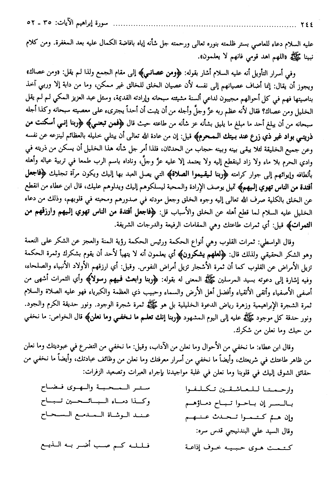ونور حدقة كل موجود صلى الله عليه وسلم عليه إلى اليوم المشهود رَبَّنا إِنَّكَ تَعْلَمُ ما نُخْفِي وَما نُعْلِنُ قال الخواص: ما نخفي من حبك وما نعلن من شكرك.