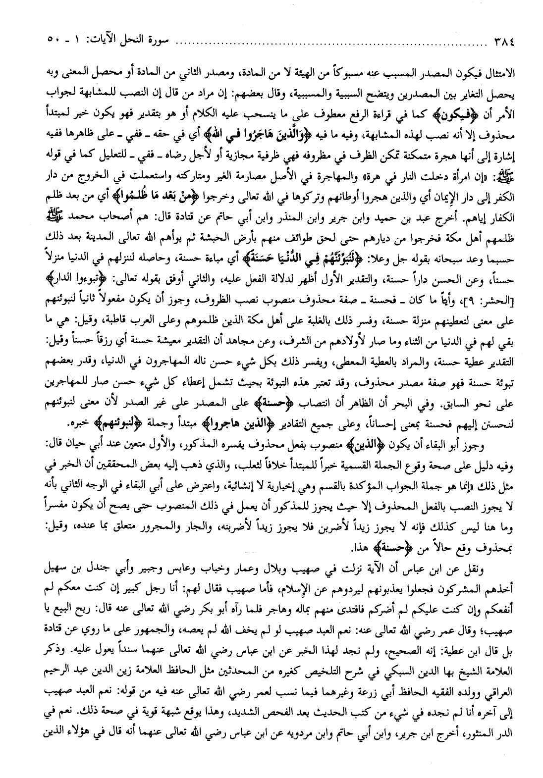التقدير عطية حسنة، والمراد بالعطية المعطى، ويفسر ذلك بكل شيء حسن ناله المهاجرون في الدنيا، وقدر بعضهم تبوئة حسنة فهو صفة مصدر محذوف، وقد تعتبر هذه التبوئة بحيث تشمل إعطاء كل شيء حسن صار للمهاجرين على نحو السابق. وفي البحر أن الظاهر أن انتصاب حَسَنَةً على المصدر على غير الصدر لأن معنى لنبوئنهم لنحسنن إليهم فحسنة بمعنى إحسانا، وعلى جميع التقادير الَّذِينَ هاجَرُوا مبتدأ وجملة لَنُبَوِّئَنَّهُمْ خبره.