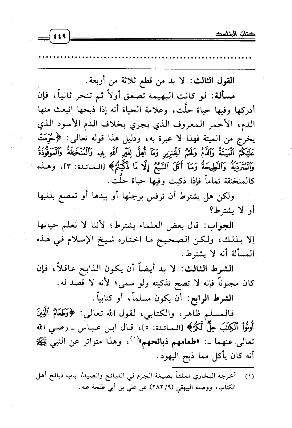 فالمسلم ظاهر، والكتابي، لقول الله تعالى: {وَطَعَامُ الَّذِينَ أُوتُوا الْكِتَابَ حِلٌّ لَكُمْ} [المائدة: 5]، قال ابن عباس ـ رضي الله تعالى عنهما ـ: «طعامهم ذبائحهم» (¬1)، وهذا متواتر عن النبي صلّى الله عليه وسلّم أنه كان يأكل مما ذبح اليهود.