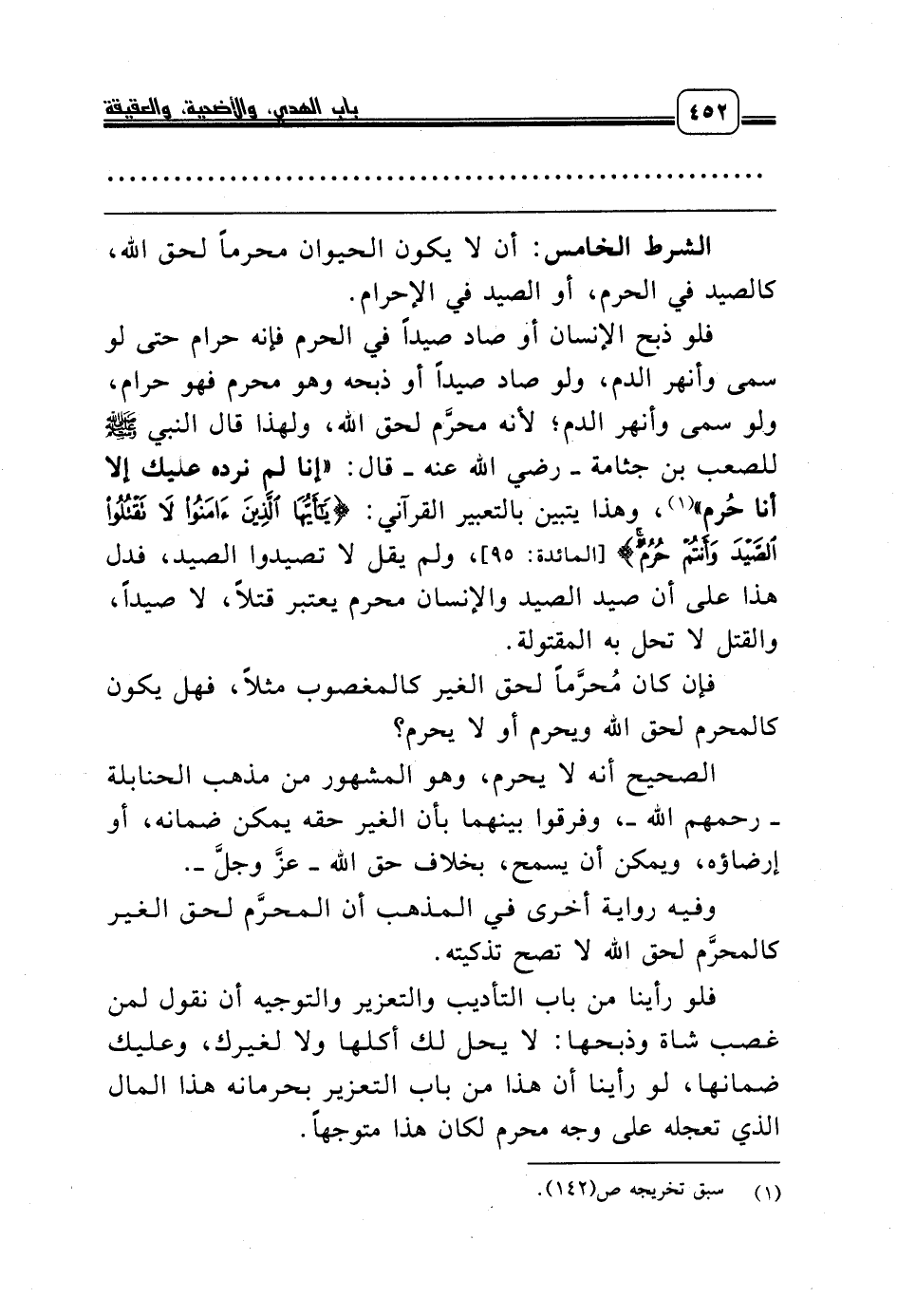 الشرط الخامس: أن لا يكون الحيوان محرماً لحق الله، كالصيد في الحرم، أو الصيد في الإحرام.