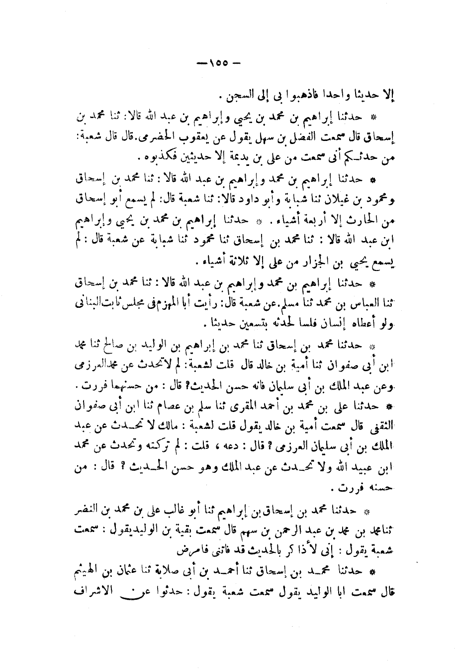 حَدَّثَنَا مُحَمَّدُ بْنُ إِسْحَاقَ، ثنا أَحْمَدُ بْنُ أَبِي صَلَابَةَ، ثنا عُثْمَانُ بْنُ الْهَيْثَمِ، قَالَ: سَمِعْتُ أَبَا الْوَلِيدِ، يَقُولُ: سَمِعْتُ شُعْبَةَ، يَقُولُ: «§حَدِّثُوا عَنِ الْأَشْرَافِ -[156]-، فَإِنَّهُمْ لَا يَكْذِبُونَ»