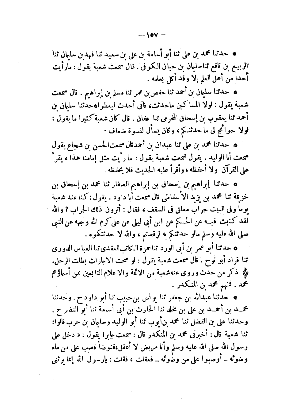 حَدَّثَنَا مُحَمَّدُ بْنُ عَلِيٍّ، ثنا أَبُو أُسَامَةَ بْنُ عَلِيِّ بْنِ سَعِيدٍ، ثنا فَهْدُ بْنُ سُلَيْمَانَ، ثنا الرَّبِيعُ بْنُ نَافِعٍ، ثنا سُلَيْمَانُ بْنُ حَيَّانَ الْكُوفِيُّ، قَالَ: سَمِعْتُ شُعْبَةَ، يَقُولُ: «§مَا رَأَيْتُ أَحَدًا مِنْ أَهْلِ الْعِلْمِ إِلَّا وَقَدْ أَكَلَ بِعِلْمِهِ»